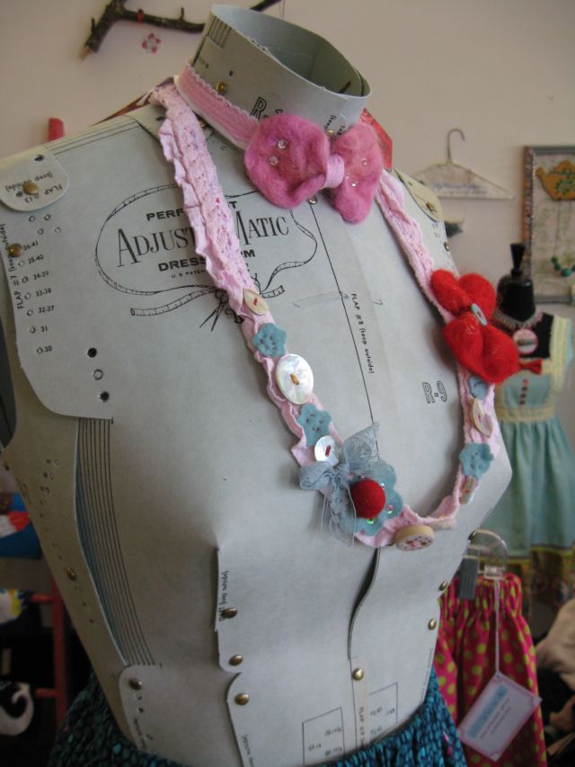 Tonight is First Friday, and the start of Art Walk Weekend. Stop by the My Aunt Debbie Shop on Queen Street - Look for my bows on the blue shoe... While you're there, don't forget to try on a prom dress by Debbie Serdy. there's felted British Wensleydale flowers too... and pretty necklaces and things....with British wool accents...just in time for spring.